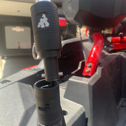 Gorilla Whips 1/2" Fiberglass Day Whip fits in our LED whip pressure release mounts and allows you to easily remove your LED whips, and replace with a black heavy duty 1/2" fiberglass whip in either 4' or 6' lengths, which you can run large flags on during the day. You can run any size grommet flags on these 1/2" fiberglass day whips.