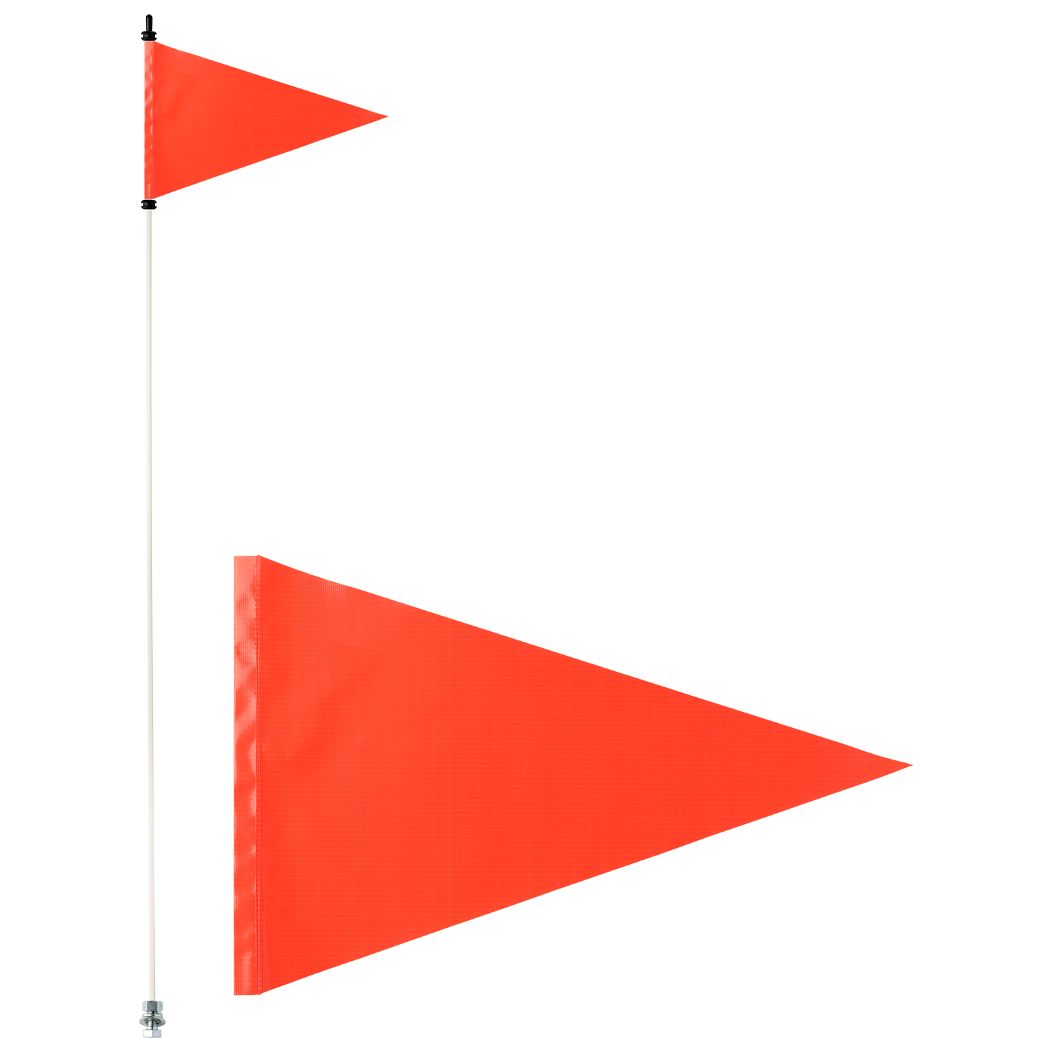 Orange Pennant Triangle Pocket Safety Flag. Option of cheaper vinyl flag, or higher quality USA made fabric triangle pocket flag. Made for off-road ATVs, UTVs, Jeeps, trucks and more.